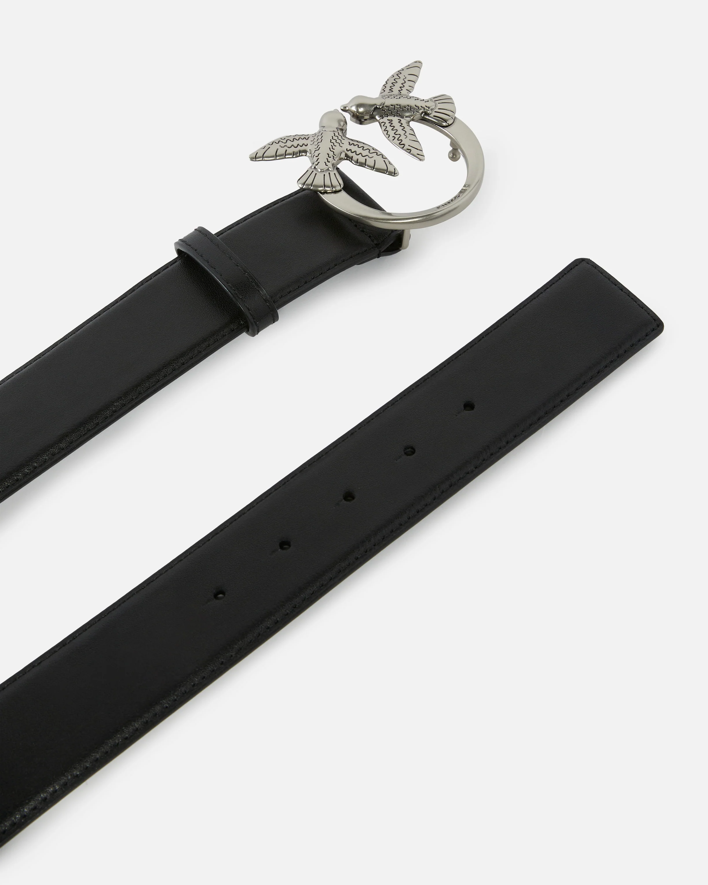 High-waist belt in soft, silky leather with metal Love Birds Diamond Cut buckle. - LOVE BIRDS HIGH LEATHER BELT 4CM